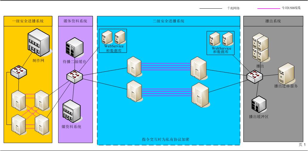 在制作网/上载与媒资之间部署大数据安全交互,通过文件深度检测、杀毒、隔离安全传输等手段,保证媒资的安全。在媒资与播出之间部署大数据安全交互系统,所有的指令和文件都通过大数据安全交互系统进行传输及解析,保证播出网的万无一失