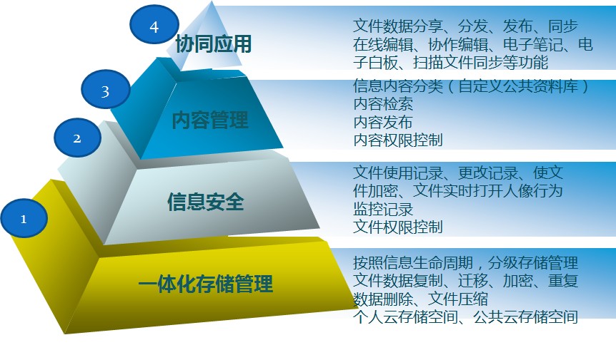 大数据安全云盘系统在结合了文件云存储管理以及公共资料库管理的基础上,提供了项目协作管理功能模块,这样企事业单位就建立起了以非结构化信息协作的核心平台,与企事业单位之前以结构化信息平台(各类数据库平台)并重,加强了企事业单位员工、各办事机构科室以及客户之间在有一个协作平台,可以大幅度提高企事业单位的工作效率。