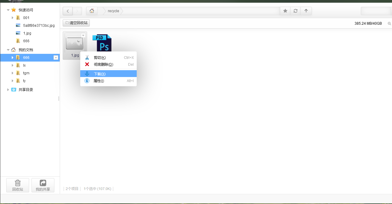 误删文件恢复,所有删除的文件可到回收站进行恢复。